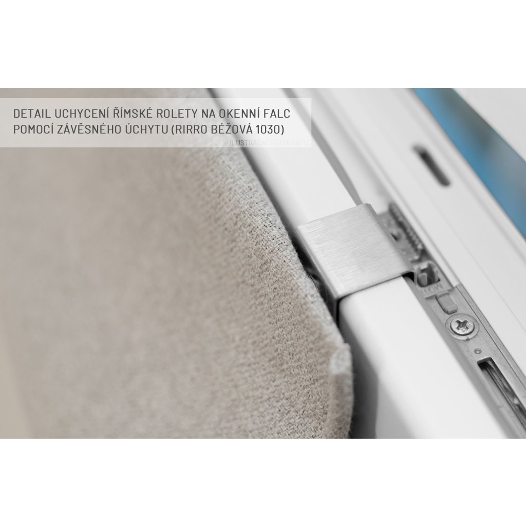 Výběr rozměru závěsného úchytu závisí na tloušťce falce okenního křídla. Římské rolety se nasazují na okenní křídlo (otevírací část). V nabídce máme tři rozměry úchytů, abyste vybrali ten správný, změřte sílu (tloušťku) falce včetně gumového těsnění. Počítejte s tím, že gumové těsnění lze mírně stlačit, popřípadě k úchytům je standardně dodávána dodatečná samolepicí podložka pro vyrovnání rozdílů rozměru úchytu a falce okenního křídla.
