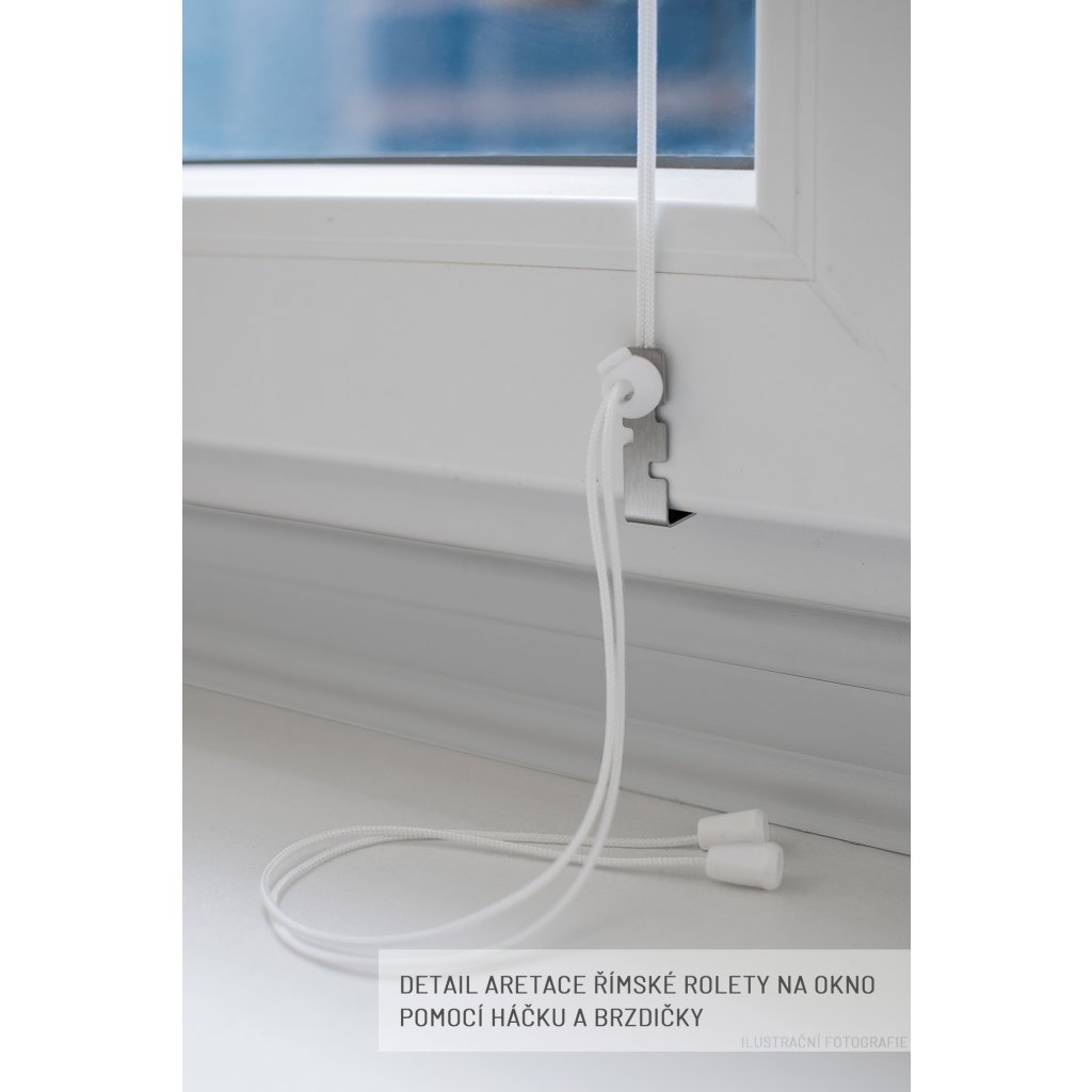 Balení obsahuje: 1 ks římské rolety, úchyty na zavěšení, návod na použití